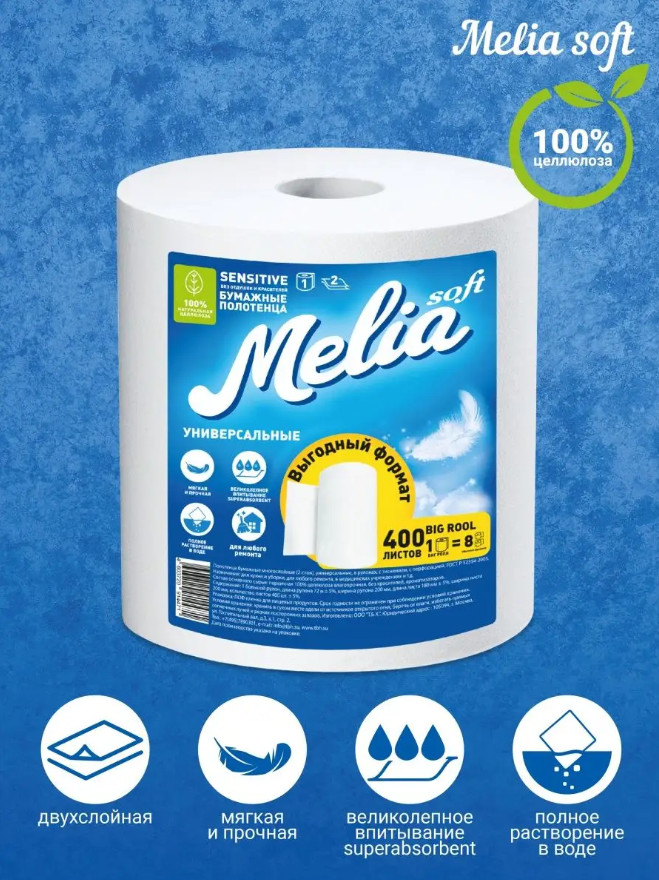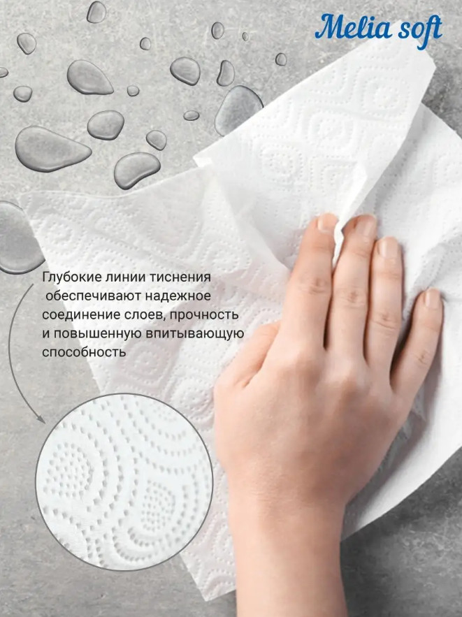 Melia Soft Полотенца бумажные-20% +62 большой рулон плотность хорошая впитываемость мягкая текстура