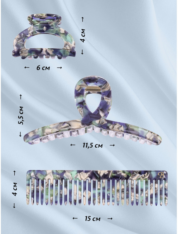 В набор крабов вошли 2 стильные заколки зажимы для волос разных форм, размеров и расческа гребень: заколка краб большой 11,5 см × 5,5 см, заколка краб средний 6 см × 4 см, расческа для волос 15 см × 4 см. Аксессуары для волос имеют разные формы и декоративные элементы: классические, бабочки, ракушки, завитки, с прорезями и многие другие. Теперь Вы без труда сможете подобрать подходящий аксессуар для волос под ваш образ.