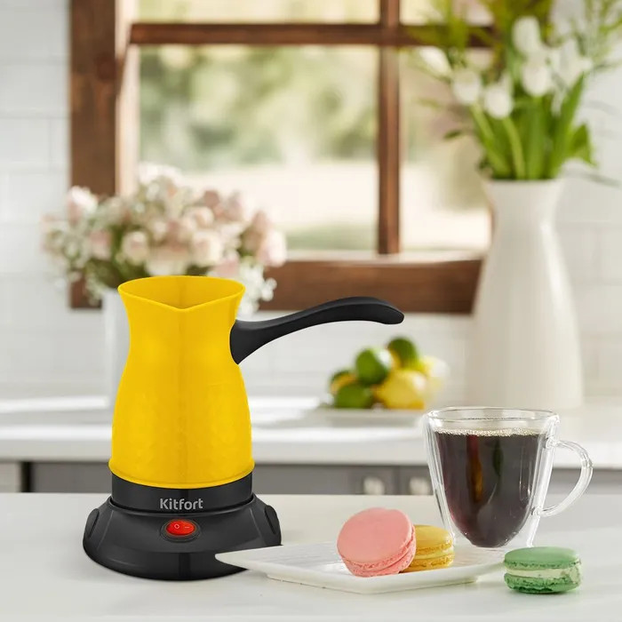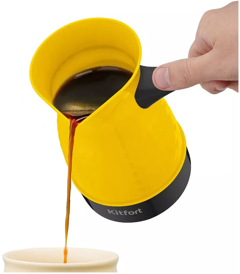 Вместительная, жизнерадостный цвет с утра поднимает настроение. Посое снятия с базы некоторое время еще продолжает греть, поэтому снимать при варке нужно чуть заранее