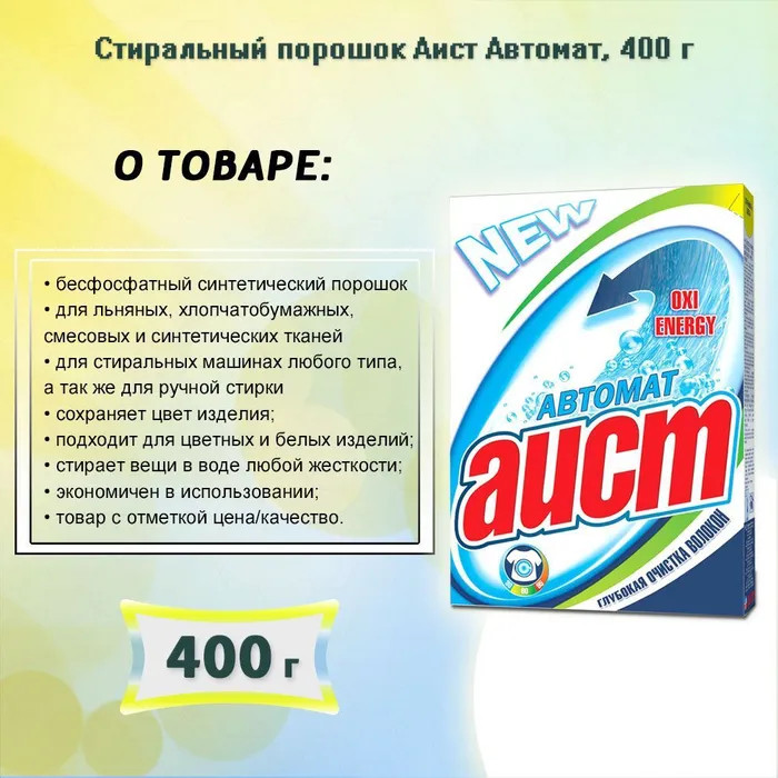 Аист Порошок стиральный «Автомат»+34 стирает хорошо отстирывает хорошо качество рекомендую хороший
