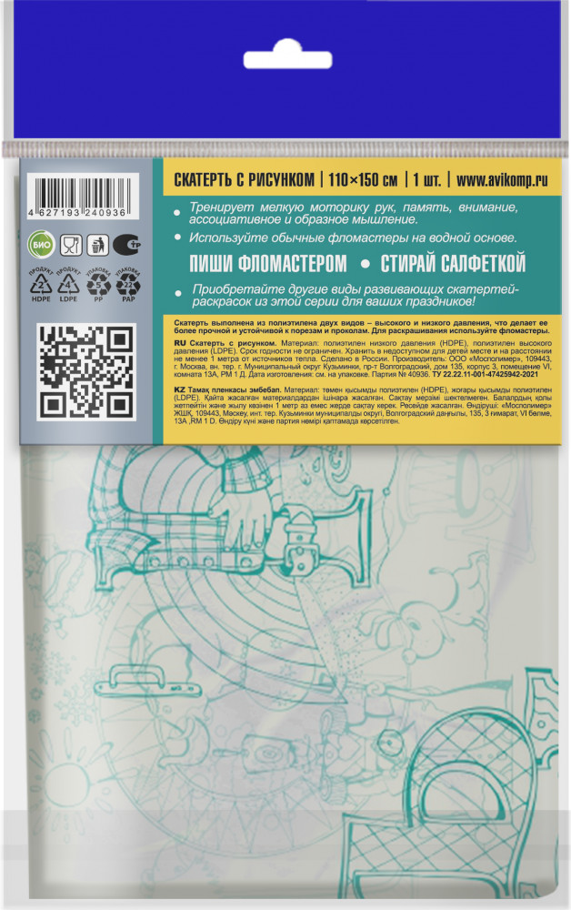 Avikomp Скатерть раскраска «Вкусный алфавит»В данный момент этот товар отсутствует в продаже. Возможно, у нас найдется аналогичный или похожий товар здесь. Одноразовые детские скатерти-раскраски тренируют мелкую моторику рук, память, внимание, ассоциативное и образное мышление. Скатерти выполнены из полиэтилена двух видов — высокого и низкого давления. Сочетание двух видов полиэтилена делает их более прочными и устойчивыми к порезам и проколам. Для раскрашивания можно использовать обычные фломастеры на водной основе. |