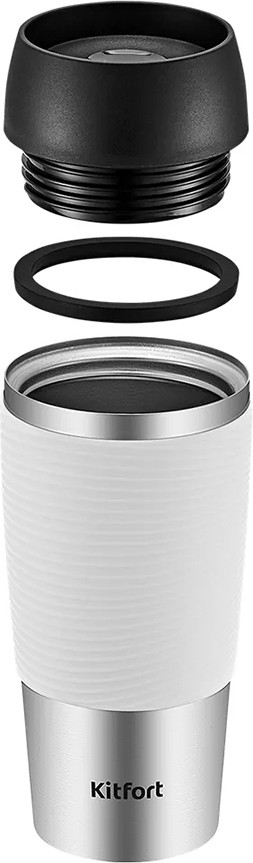 В термокружке Kitfort КТ-1224 навинчивающаяся крышка с силиконовым уплотнительным кольцом. Такая конструкция защищает от протеканий.