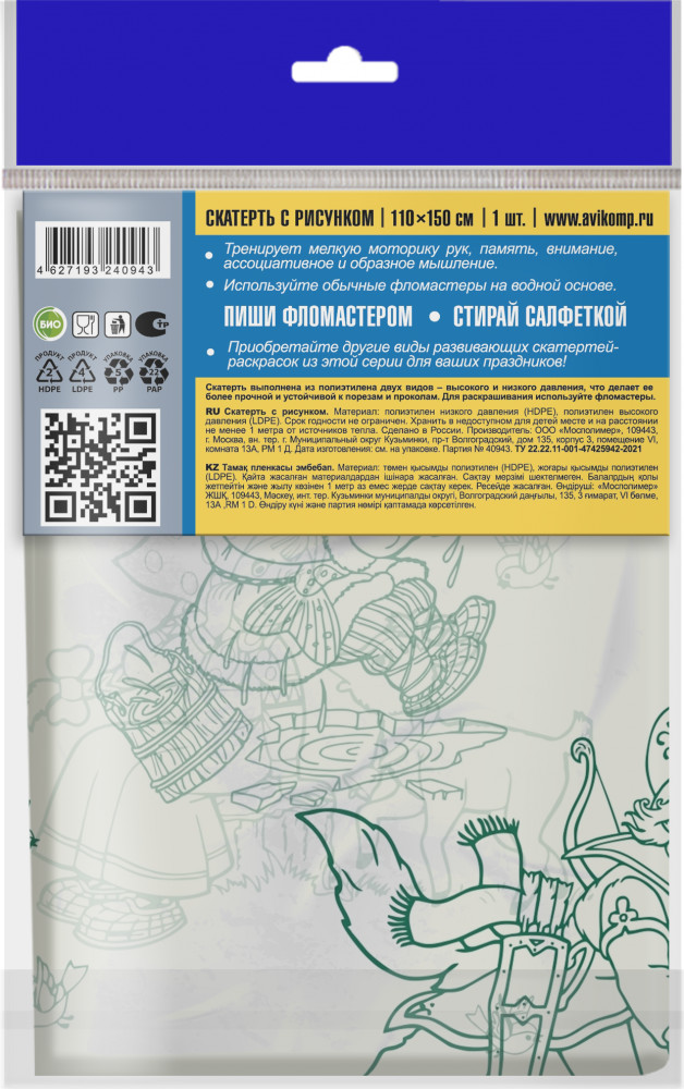 Avikomp Скатерть раскраска «В гостях у сказки»В данный момент этот товар отсутствует в продаже. Возможно, у нас найдется аналогичный или похожий товар здесь. Одноразовые детские скатерти-раскраски тренируют мелкую моторику рук, память, внимание, ассоциативное и образное мышление. Скатерти выполнены из полиэтилена двух видов — высокого и низкого давления. Сочетание двух видов полиэтилена делает их более прочными и устойчивыми к порезам и проколам. Для раскрашивания можно использовать обычные фломастеры на водной основе. |