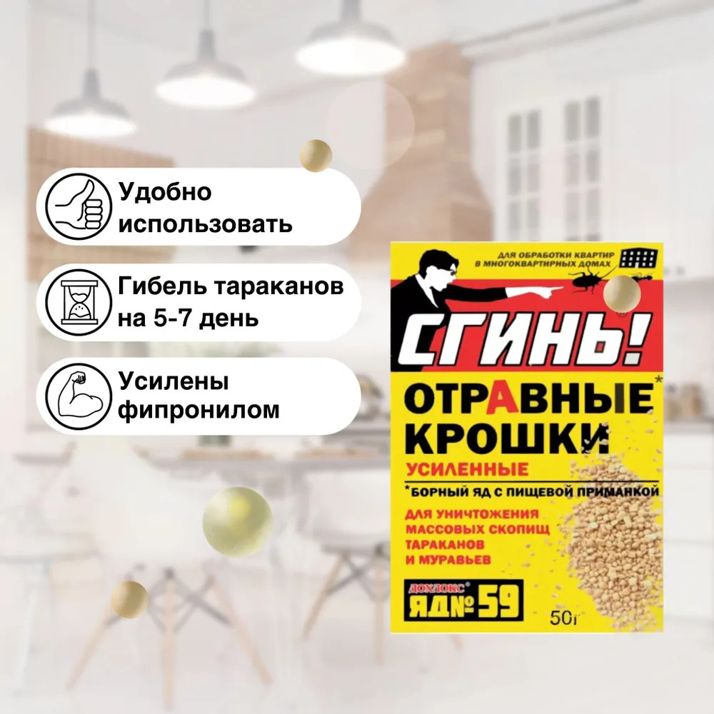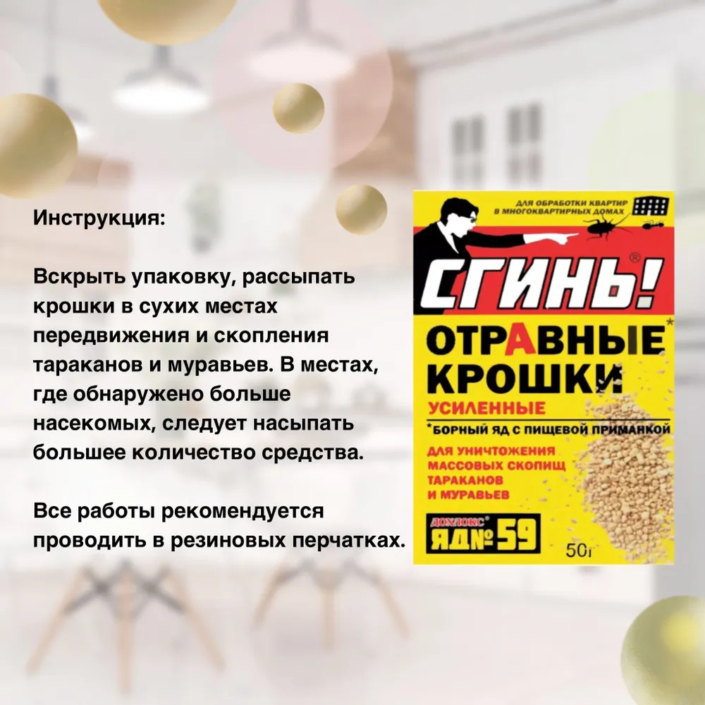 Дохлокс Крошки отравные усиленные для уничтожения тараканов и муравьев «Сгинь! №59»быстро действует без запаха экономичный В данный момент этот товар отсутствует в продаже. Возможно, у нас найдется аналогичный или похожий товар здесь. Новое и очень эффективное средство. Крошки — это отравленные ядом сухие пищевые приманки. Размер крошек наиболее подходит для «удобства» поедания насекомыми. Массовая гибель тараканов наступает через 5 ‒ 7 суток, муравьёв через 7 ‒ 10 дней. Насекомые поедают приманку, заражаются ядом, а затем отравляют им своих сородичей, что приводит к цепной реакции по типу эпидемической. |