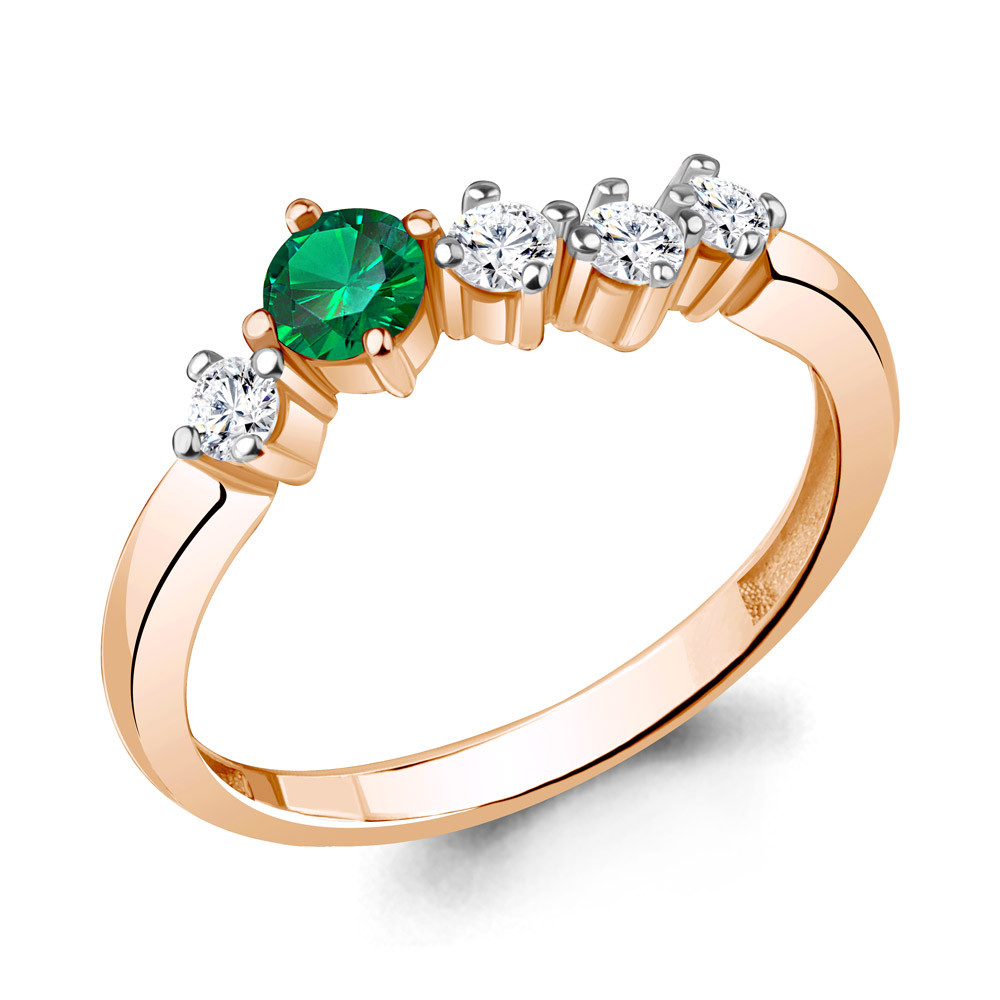 Aquamarine Кольцо из золоченного серебра с фианитами и наноизумрудом