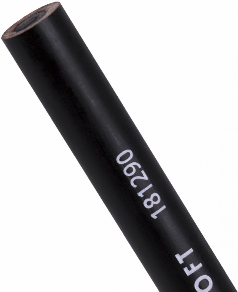 Корпус длиной 176 мм и диаметром 7,5 мм изготовлен из натуральной липы. Заточенный карандаш черного цвета универсален в рисовании и обладает огромными возможностями в передаче света и тени. Обладает мягкой степенью твердости (SOFT). Диаметр грифеля — 4,0 мм.
