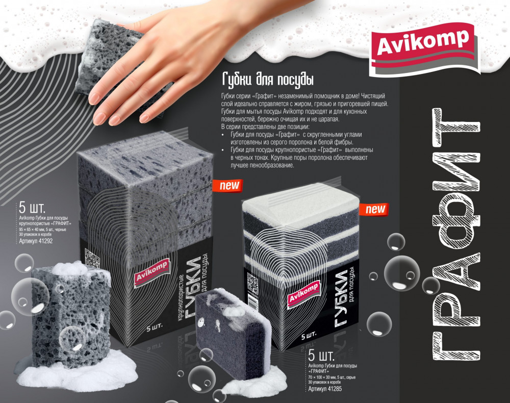 Avikomp Набор губок «Графит»В данный момент этот товар отсутствует в продаже. Возможно, у нас найдется аналогичный или похожий товар здесь. Серия: Графит Губки для посуды серии «Графит» — незаменимый помощник в доме! Чистящий слой идеально справляется с жиром, грязью и пригоревшей пищей. Губки для мытья посуды Avikomp подходят и для кухонных поверхностей, бережно очищая их и не царапая. Губки для посуды крупнопористые «Графит» выполнены в черных тонах, имеют размер 9,5 × 6,5 × 4 см. Крупные поры поролона обеспечивают лучшее пенообразование. |