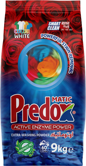 Стиральный порошок Predox с лёгкостью справится с различными загрязнениями, придаст белью нежный розы. Благодаря оптимальной формуле для повседневной стирки, порошок стиральный Predox для белого и цветного белья отлично справляется с различными стойкими загрязнениями, отстирывает бережно и эффективно, не повреждая волокна ткани, сохраняя насыщенность цветов. Predox придает белью приятную свежесть. Специально разработанная формула стирального порошка Predox содержит компоненты для эффективной стирки, а так же вещества которые ухаживают за тканью. Порошок не содержит фосфаты и хлорные отбеливатели. Стиральный порошок Predox подходит для стирки белого и цветного белья, всех типов тканей (кроме шерсти и шёлка) в стиральных машинах автомат любого типа и ручной стирки в воде любой жесткости. Турецкий стиральный порошок Predox отлично растворяется в воде так же как и жидкий стиральный порошок или гель для стирки.