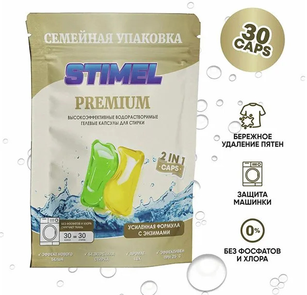 | Российский бренд, который производит универсальные для любого вида белья капсулы для стирки, не обладающие специфическим запахом и предназначенные как для полной, так и для частичной загрузки. Капсулы «Stimel» подходят для стиральных машин любого типа, а специально разработанная формула работает даже при низких температурах. |