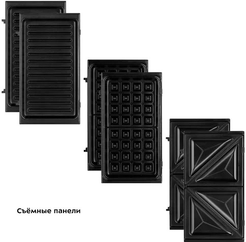 Набор из 3 пар сменных панелей позволяет готовить разнообразные блюда. Благодаря возможности снимать панели, их легко мыть после готовки. |