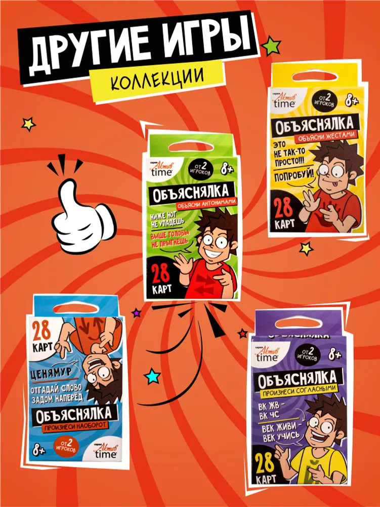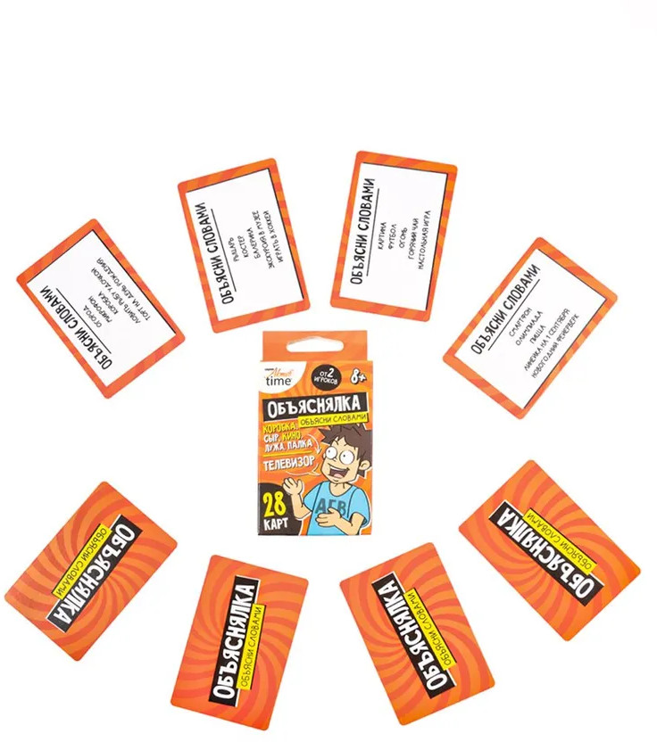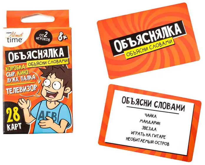 💳 Оплатить за товар можно при получении 🇰🇿 Есть бесплатная доставка по Казахстану 🎁 Копите бонусы с каждой покупки Серия: Актив time Веселая настольная игра-объяснялка «Объясни словами». Серия «Актив time» — это игра для компании из 2 и более игроков. Тяни задание и объясняй заданные слова без использования однокоренных слов! |