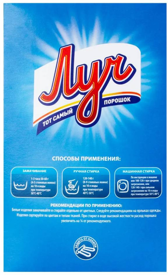 Стиральный порошок Луч автомат — это универсальное решение для чистоты ваших вещей. Порошок для стирки автомат разработан для замачивания и стирки белого, черного и цветного белья, детского белья и одежды, ручной и машинной стирки в стиральных машинах любого типа хлопчатобумажных, льняных, синтетических тканей, тканей из смешанных волокон. Порошок быстро растворяется в воде и полностью выполаскивается из белья и одежды, не оставляя запаха, что позволяет использовать его для детей, малышей и аллергиков.
