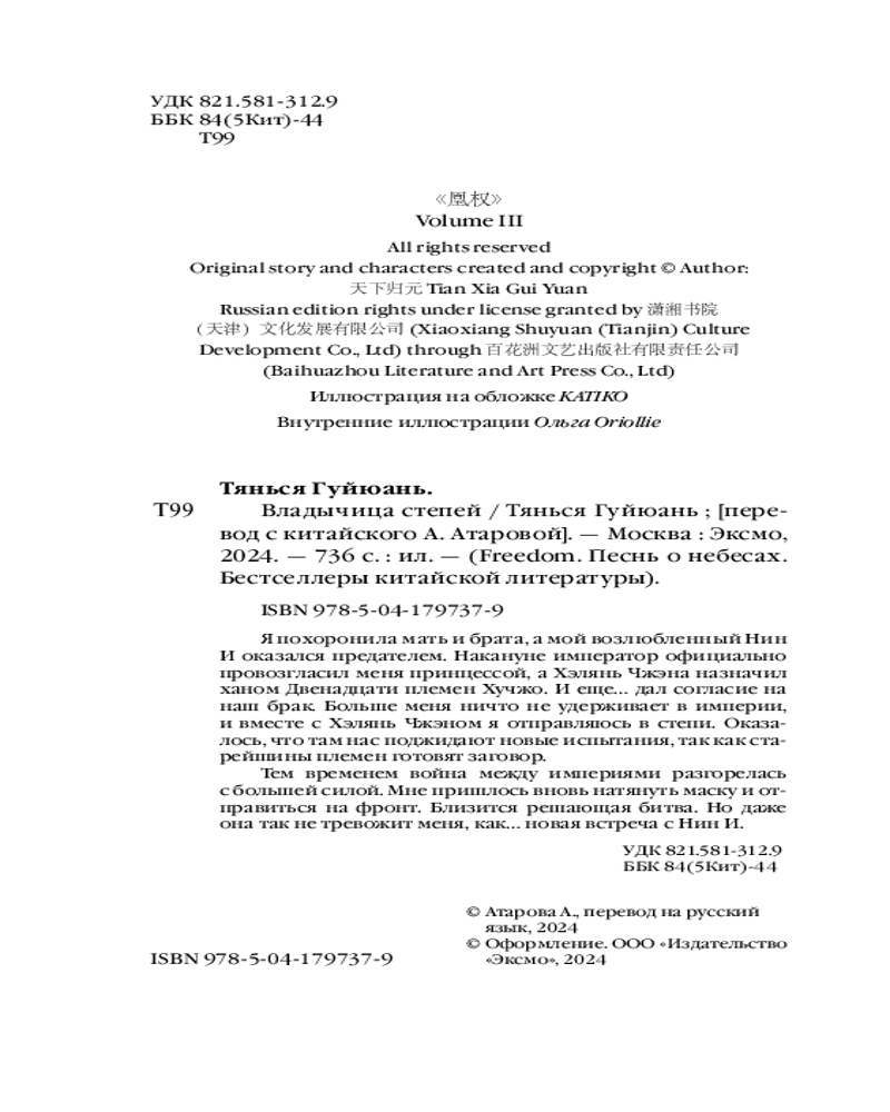 💳 Оплатить за товар можно при получении 🇰🇿 Есть бесплатная доставка по Казахстану от 1 дня 🎁 Копите бонусы с каждой покупки Серия: Freedom. Песнь о небесах. Бестселлеры китайской литературы Долгожданное продолжение романа «Восхождение фениксов». Предательство Нин И нанесло Фэн Чживэй невыносимую рану, но не сломило ее дух. Девушка становится владычицей степей и отправляется противостоять заговору Золотого альянса. Тем временем война между империями разгорается все ярче. |