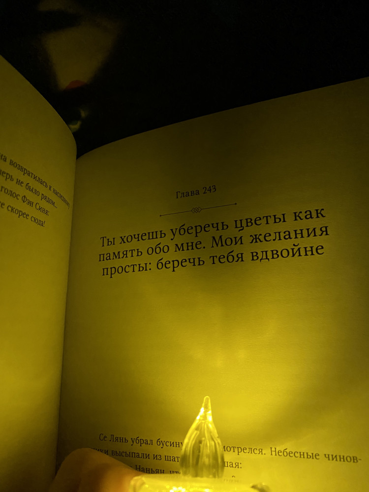 Очень рада что все же решилась познакомиться с этой вселенной и с творчеством Мосян. Красивая история удивительной любви заставляет поверить что вечная любовь действительно существует. Так нежно и преданно могут любить только Хуаляни) последние главы заставили меня плакать хотя уже сделала это когда читала в эл.варианте. очень обрадовало что в томик так же вошли и экстры Любите Мосян и жить станет намного лучше!