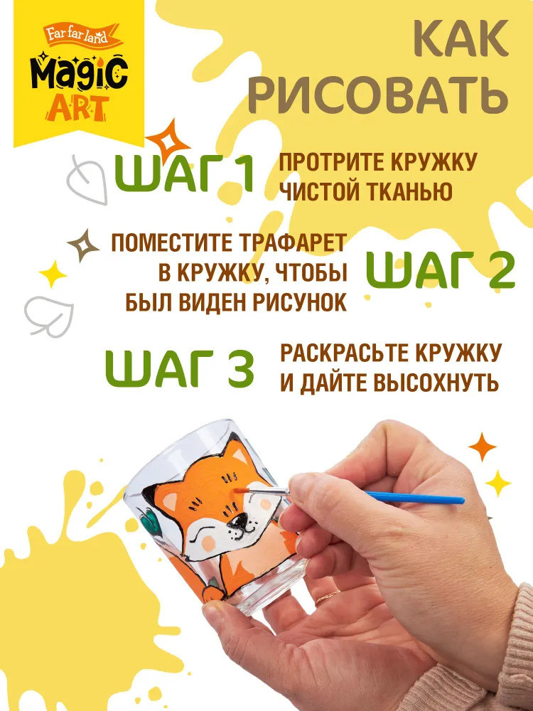 💳 Оплатить за товар можно при получении 🇰🇿 Есть бесплатная доставка по Казахстану от 1 дня 🎁 Копите бонусы с каждой покупки Серия: Magic art Роспись кружки «Лисичка» — это увлекательный творческий процесс, в результате которого Вы сможете создать неповторимый элемент декора. Кроме того, кружка, оформленная своими руками, может стать великолепным подарком близким и друзьям. Кружка под роспись «Лисичка» помогает развитию творческих способностей ребёнка, мелкой моторики, а также способствует концентрации внимания и художественного вкуса. |