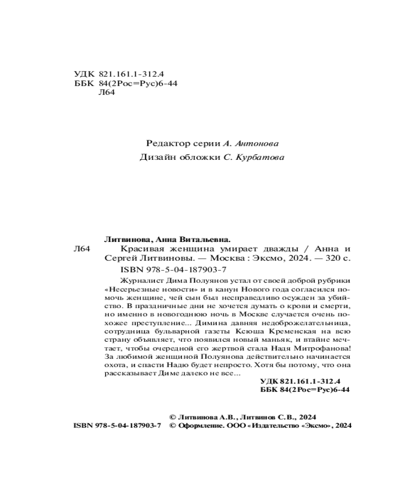 Красивая женщина умирает дваждыСергей Витальевич Литвинов, Анна Витальевна Литвинова -30% +37
