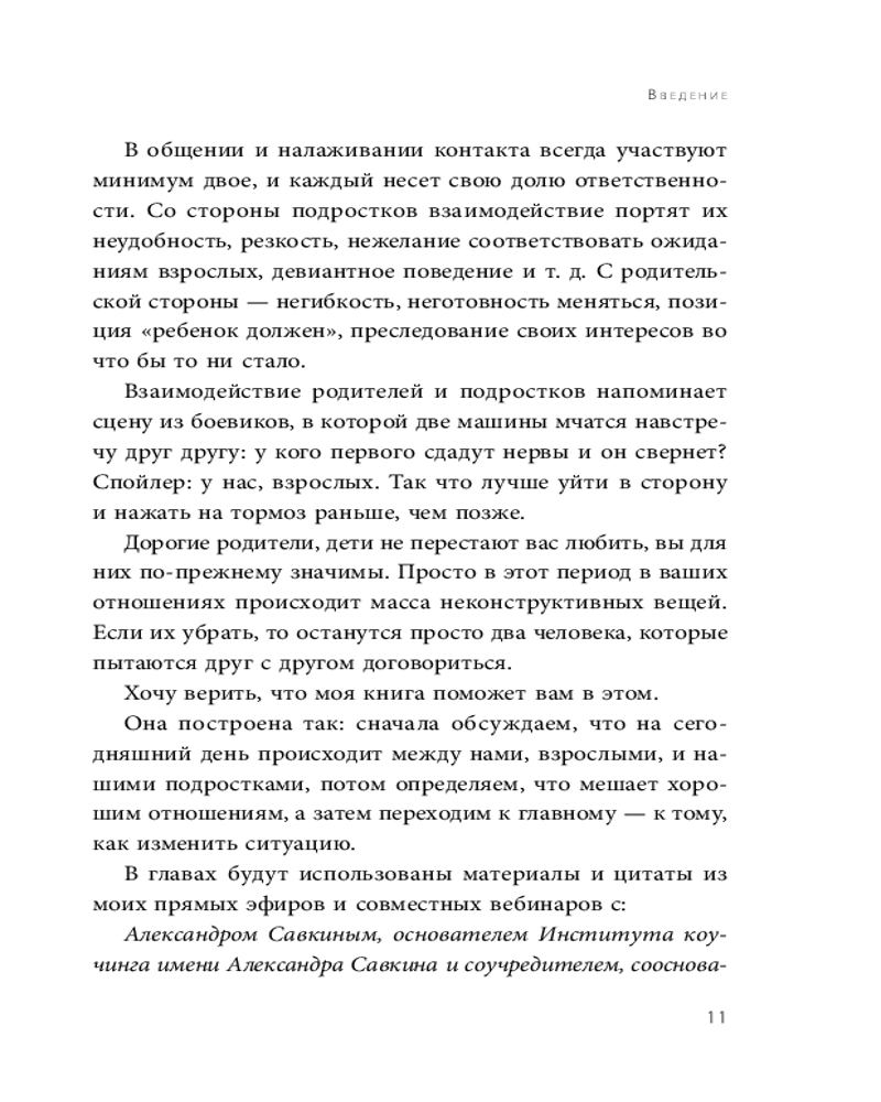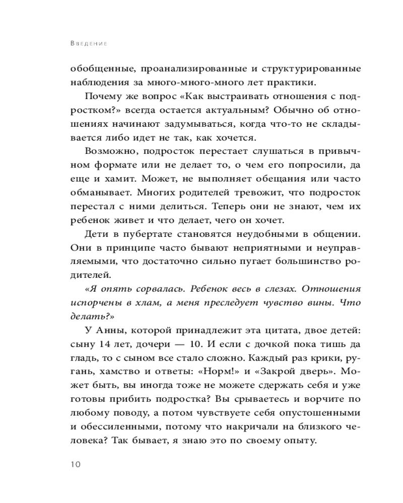 «Операционные проблемы с хамством, поздними возвращениями, рискованным поведением, странными компаниями и занятиями, высказываниями и решениями, пугающими родителей, не исчезнут по щелчку. На них можно повлиять, но не устранить. Решение об устранении может принять только сам ребенок. За вами — выбор способа влияния».