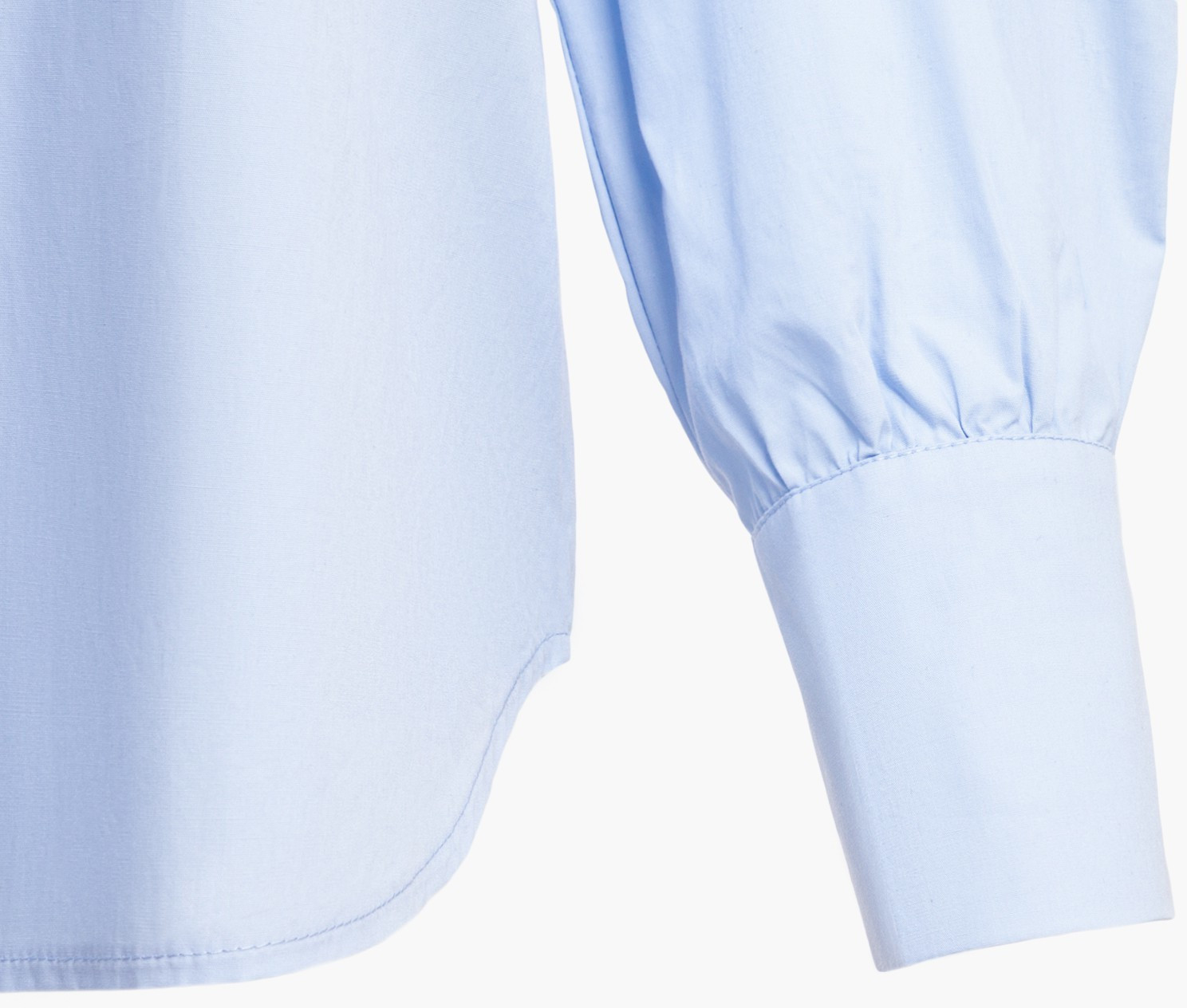 Из-за широкого фасона рубашки , несколько неудобно при поднятии рук вверх, подол рубашки тянется за рукавами