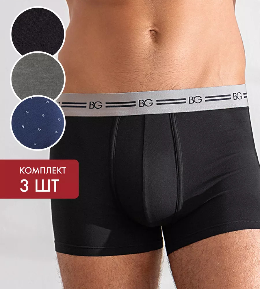 Трусы мужские боксеры — набор из 3 штук в подарочной упаковке. Модель на средней посадке дополнены мягкой резинкой с логотипами, которые обеспечивают плотное прилегание. Она не сдавливает и не оставляет следов на коже. Благодаря этому, вы можете наслаждаться свободой движений в любой ситуации и чувствовать себя уверенно в любом образе.