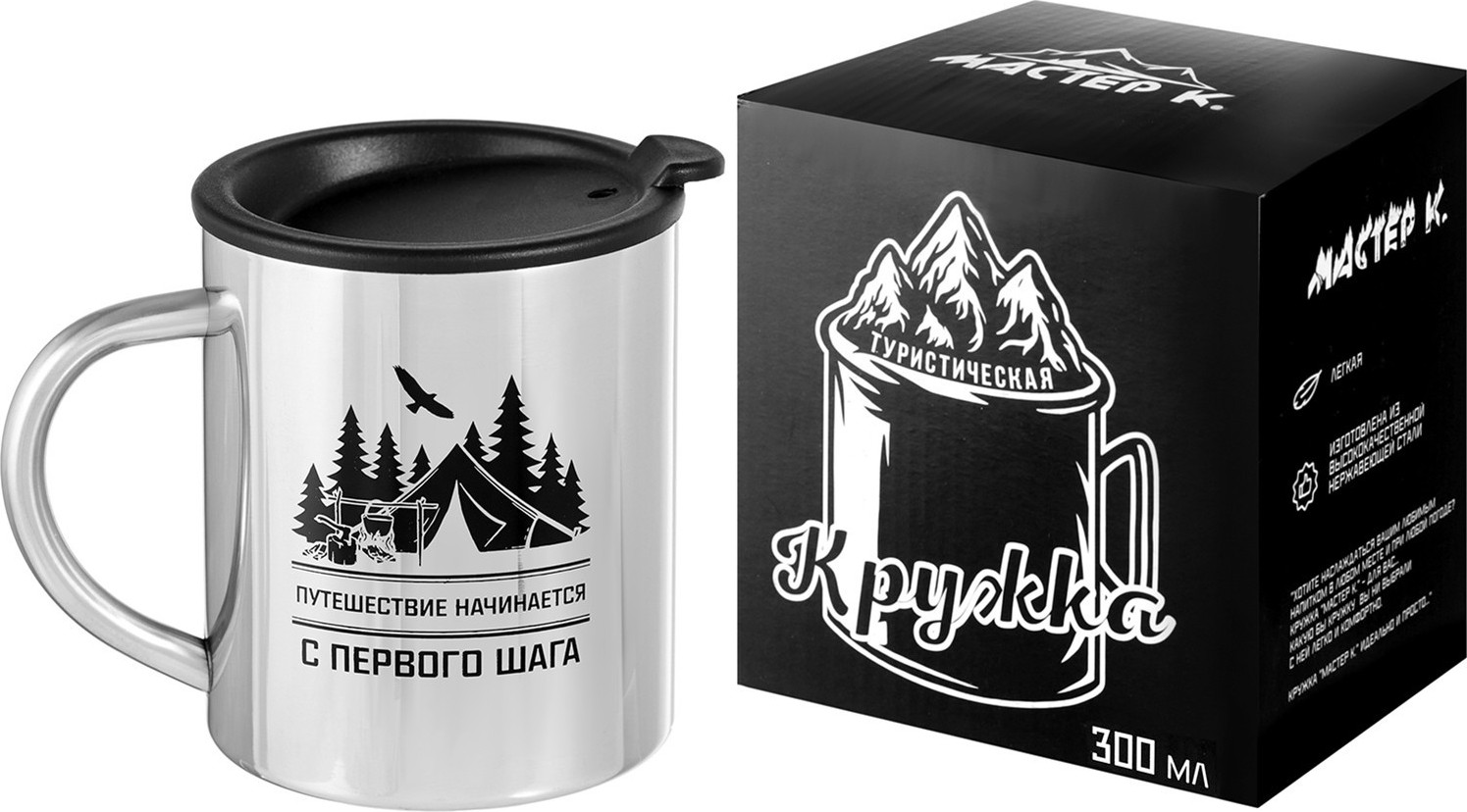 Мастер К Термокружка «Путешествие начинается с первого шага»В данный момент этот товар отсутствует в продаже. Возможно, у нас найдется аналогичный или похожий товар здесь. Поддерживает температуру горячих напитков в течение 2 часов. Удобна во время поездок, в походах и в быту. Изделие сделано из нержавеющей стали. Металл обладает высокой прочностью и легко моется. Герметичная крышка предотвращает протекания и обеспечивает теплоизоляцию. |