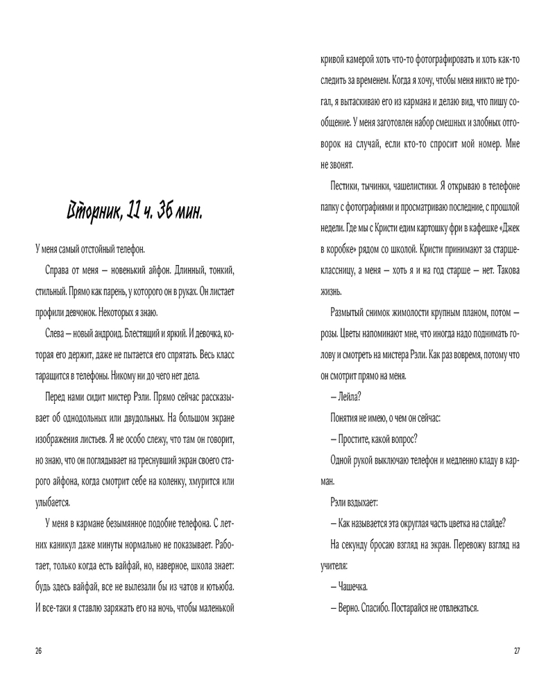 Жизнь Лейлы — таинственный биом, в котором соседствуют отличные оценки, любовь к науке и сложные условия в школе и дома. Ее спутанные волосы и грязная одежда давно стали причиной для насмешек одноклассников, не знающих, что на самом деле происходит у нее дома. |