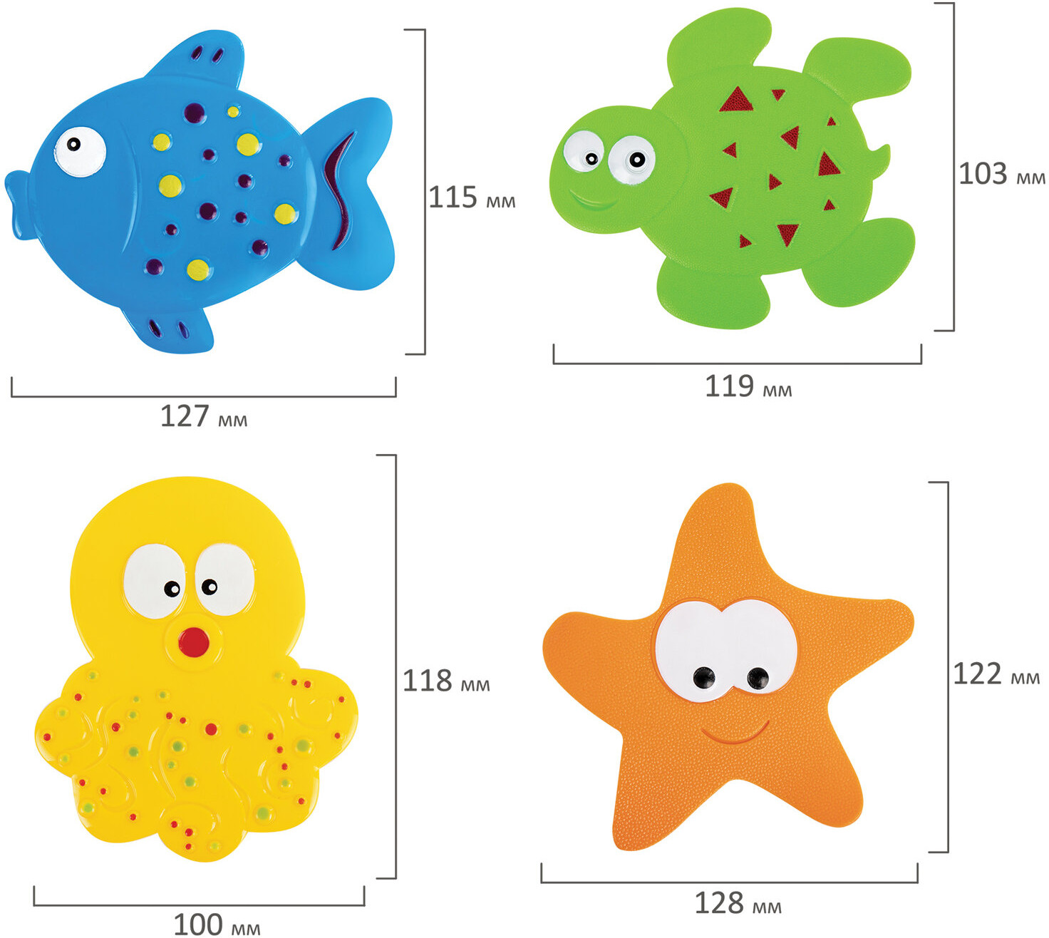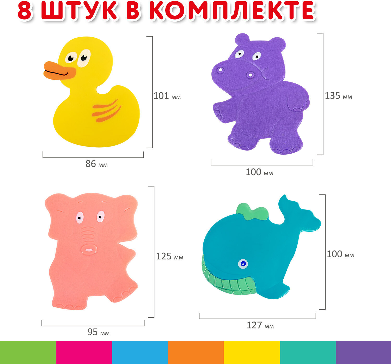 💳 Оплатить за товар можно при получении 🇰🇿 Есть бесплатная доставка по Казахстану от 1 дня 🎁 Копите бонусы с каждой покупки Мини-коврики для ванной — это яркие фигурки для купания на присосках, которые крепятся на любую гладкую поверхность, при этом не оставляют следов. Они сделаны из безопасных материалов, сертифицированы и имеют множество способов применения. Мини-коврики представляют собой набор из 8-ми разноцветных изделий на присосках в виде кита, рыбки, осьминога, черепахи, уточки, бегемота, слона, морской звезды, которые превратят купание в веселое развлечение. Упакованы в подарочную картонную коробку. |