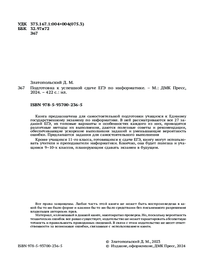 Подготовка к успешкой сдаче ЕГЭ по информатикеДмитрий Михайлович Златопольский -20% +298