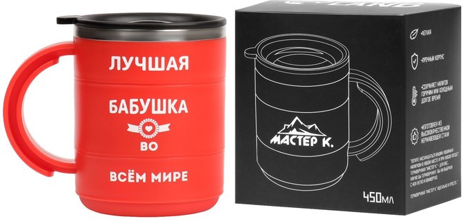 Мастер К Термокружка «Лучшая бабуля»В данный момент этот товар отсутствует в продаже. Возможно, у нас найдется аналогичный или похожий товар здесь. Термокружка «Баррель нефти» — идеальный аксессуар для активных пользователей. Внутренняя часть корпуса выполнена из высококачественной нержавеющей стали. Она устойчива к повреждениям, а так же не изменяет вкус напитка. Пластиковая часть (внешняя) предотвращает скольжение и не обжигает руки, обеспечивает удобство использования. Вставная крышка оснащена силиконовым уплотнителем. |