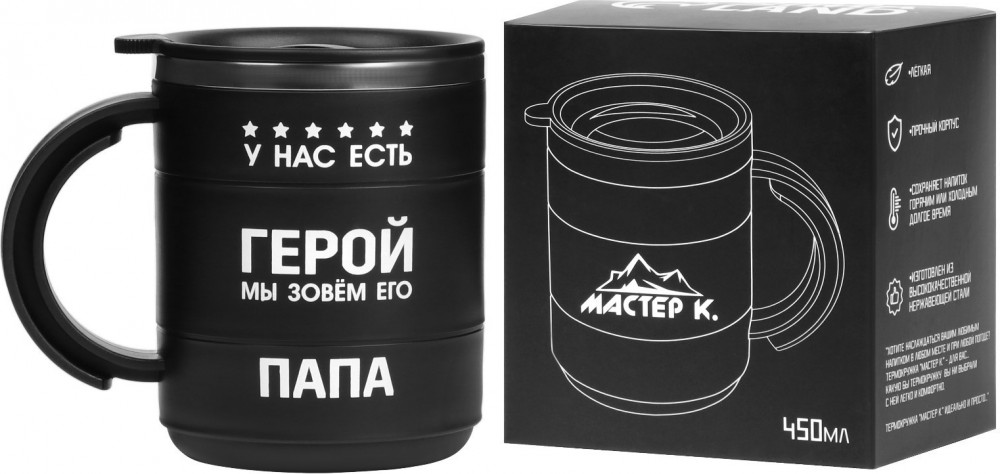 Мастер К Термокружка «У нас есть герой»В данный момент этот товар отсутствует в продаже. Возможно, у нас найдется аналогичный или похожий товар здесь. Термокружка — незаменимый помощник в повседневной жизни. Будь это дальняя поездка, обычная прогулка или просто рабочий день в офисе — любимый напиток всегда с собой. |