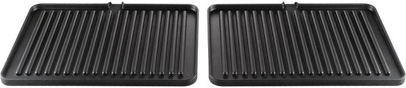 • как барбекю-жаровню Раскройте панели гриля на 180°, чтобы жарить одновременно на двух поверхностях. Например, на одной — ломтики мяса, рыбы или котлеты для бургеров, на другой — шампиньоны, сладкий перец и кабачки;