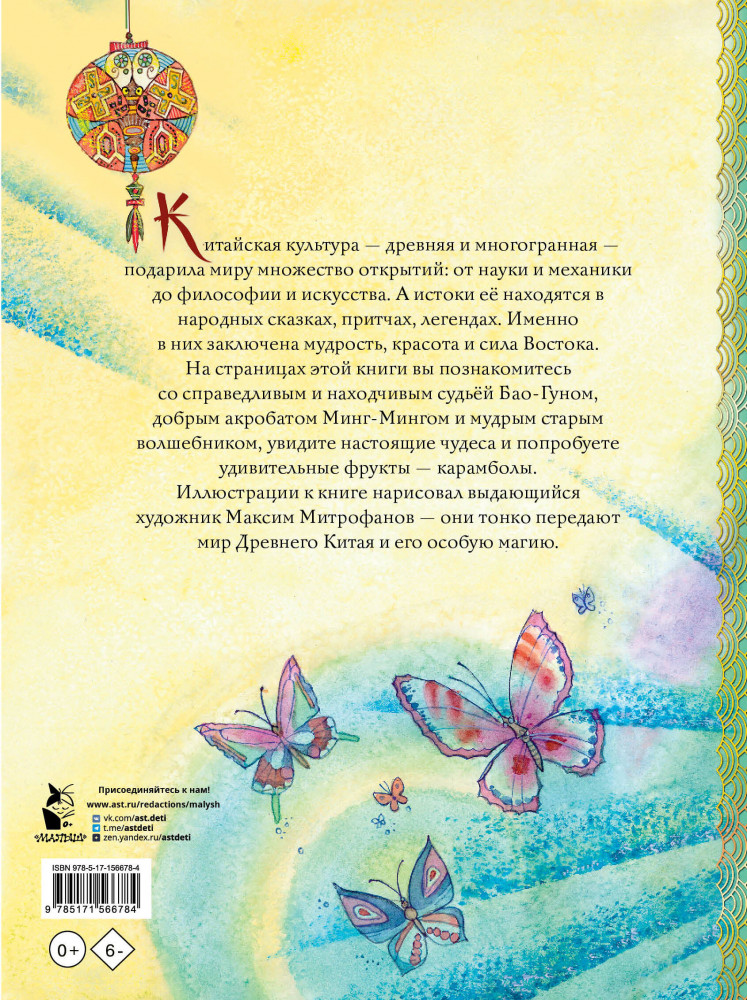 Китайские сказкиВ данный момент этот товар отсутствует в продаже. Возможно, у нас найдется аналогичный или похожий товар здесь. Серия: Сокровища мировой литературы для детей Китайская культура — древняя и многогранная — подарила миру множество открытий: от науки и механики до философии и искусства. В последние годы она завоёвывает все большую популярность. А истоки её находятся в народных сказках, притчах, легендах. Именно в них заключена мудрость, красота и сила Востока. На страницах этой книги вы познакомитесь со справедливым и находчивым судьёй Бао-Гуном, добрым акробатом Минг-Мингом и мудрым старым волшебником, увидите настоящие чудеса и попробуете удивительные фрукты — карамболы. |