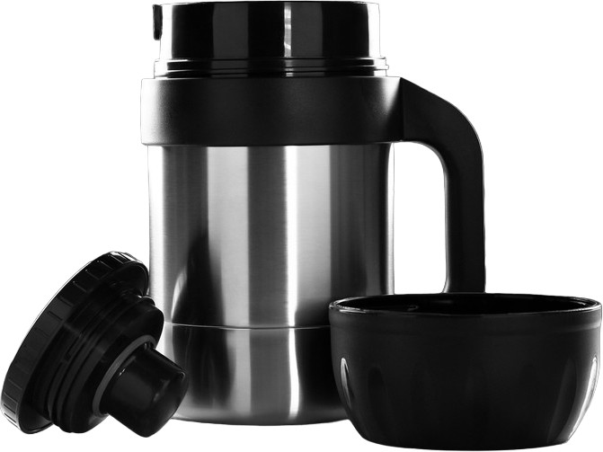 Наливается напиток в крышку-чашку, достаточно повернуть резьбовую пробку вполоборота.
