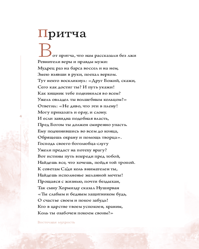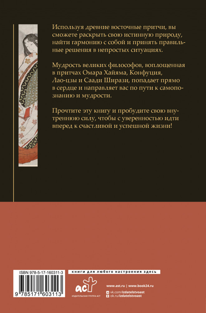 💳 Оплатить за товар можно при получении 🇰🇿 Есть бесплатная доставка по Казахстану от 1 дня 🎁 Копите бонусы с каждой покупки Серия: Мудрость веков. Подарочная Используя древние восточные притчи, вы сможете раскрыть свою истинную природу, найти гармонию с собой и принять правильные решения в непростых ситуациях. Мудрость великих философов, воплощенная в притчах Омара Хайяма, Конфуция, Лао-цзы и Саади Ширази, попадает прямо в сердце и направляет вас по пути к самопознанию и мудрости. Прочтите эту книгу и пробудите свою внутреннюю силу, чтобы с уверенностью идти вперед к счастливой и успешной жизни! |