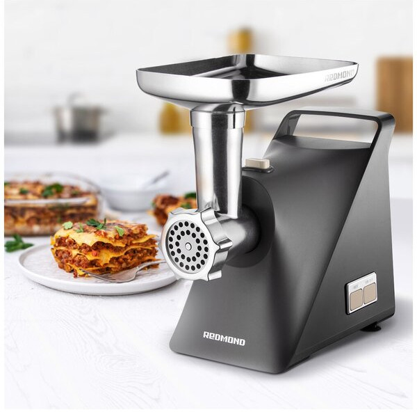Мясорубка Redmond RMG-1245 «3 в 1» с удобным загрузочным лотком из нержавеющей стали предназначена для изготовления фарша разной степени помола, а также домашних колбасок и восточных кеббе. Повышенная мощность двигателя позволяет перемалывать до 1,6 кг фарша в минуту.