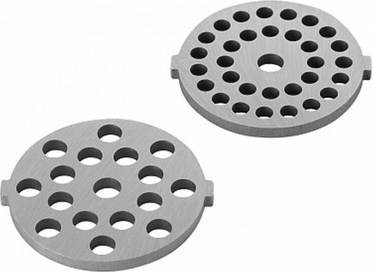 Перфорированные сменные диски мясорубки позволяет готовить фарш разного помола: