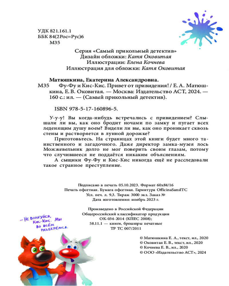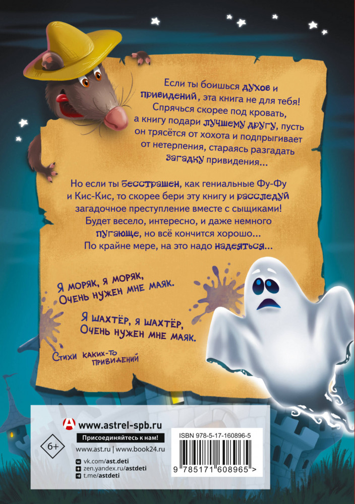 Серия: Самый прикольный детектив У-у-у! Вы когда-нибудь встречались с привидением? Слышали ли вы, как оно бродит ночами по замку и пугает всех леденящим душу воем? Видели ли вы, как оно проникает сквозь стены и растворяется в лунной дорожке? Приготовьтесь. На страницах этой книги будет много таинственного и загадочного. Даже директор замка-музея лось Можжевельник долго не мог поверить своим глазам, потому что случившееся не поддаётся никаким объяснениям. А сыщики Фу-Фу и Кис-Кис никогда ещё не расследовали такое странное преступление. |