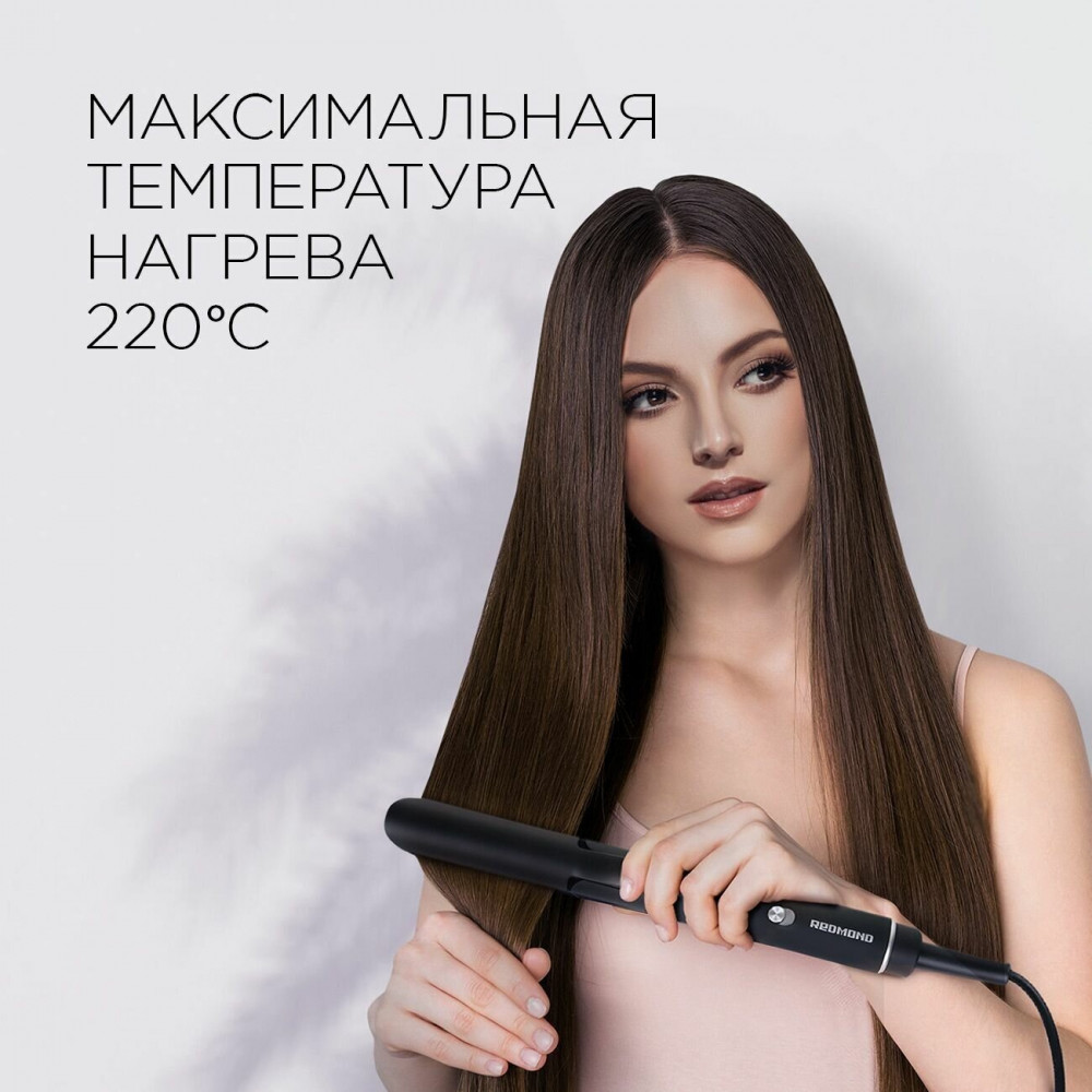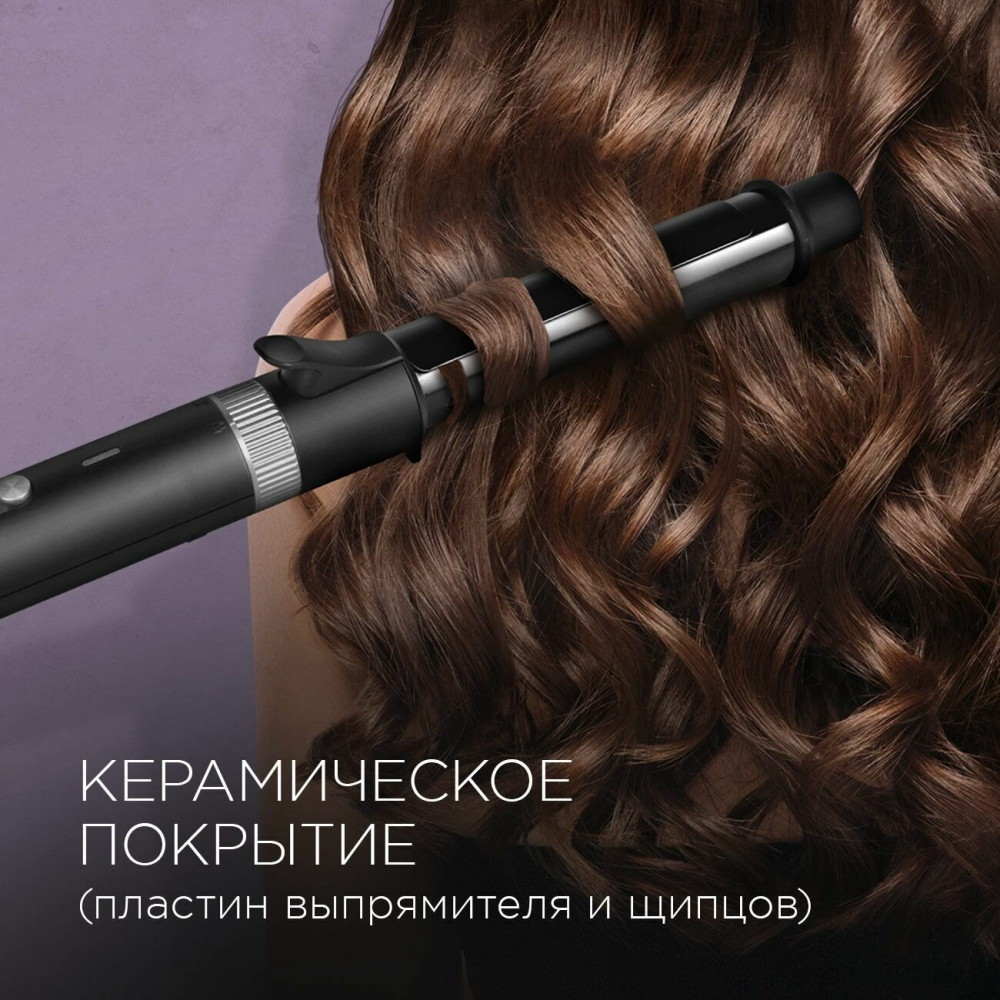 Чтобы сделать волосы идеально гладкими и блестящими, установите насадку-выпрямитель. Керамические пластины равномерно нагреваются по всей поверхности (максимальная температура — 220 °C). Они плавно скользят, обеспечивая максимально бережное выпрямление. Вы сможете быстро обрабатывать локоны, не беспокоясь, что сильно сожмете и повредите прядь.