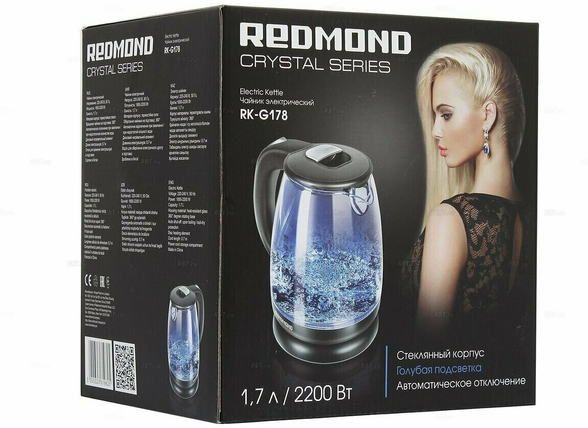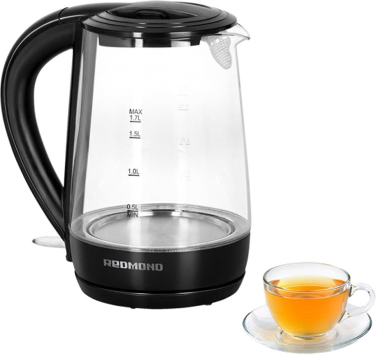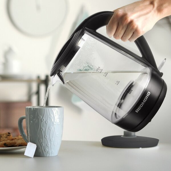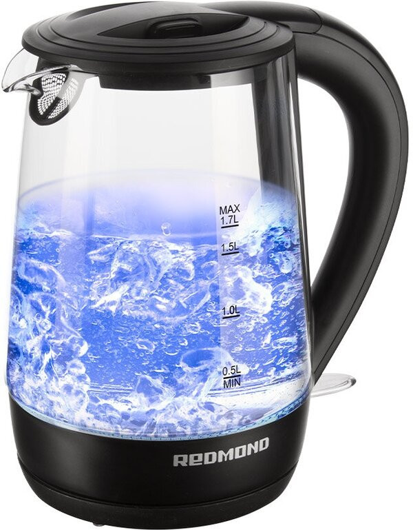Redmond RK-G193 — дизайнерский электрический чайник с синей светодиодной подсветкой и прозрачной стеклянной колбой. Эта модель может стать не только полезным, но и элегантным аксессуаром на вашей кухне.