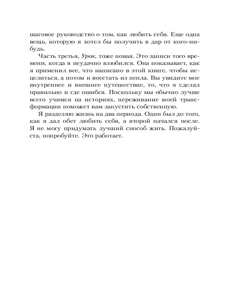 Автор делиться собственной методикой как справляться с жизненными неудачами и при этом любить себя, несмотря ни на что.