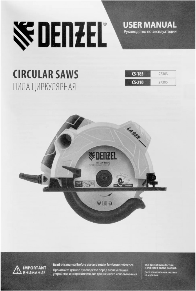 | Denzel Пила циркулярная по дереву CS-210+2053 (бонуса)