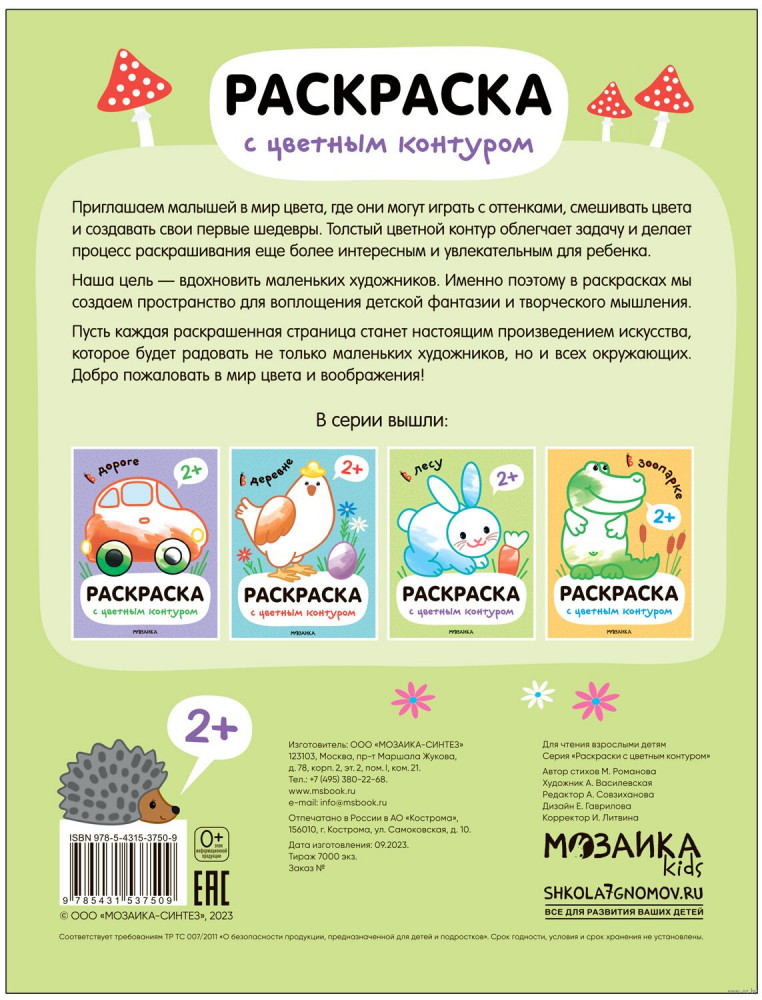Серия: Раскраски с цветным контуром Книга «В лесу» серии «Раскраски с цветным контуром» — путешествие в мир дикой природы для детей от 2 лет. Ребенок познакомится с медведем, лосем, ежиком и другими обитателями леса и сможет узнать о них больше интересного благодаря забавным стихотворениям. |