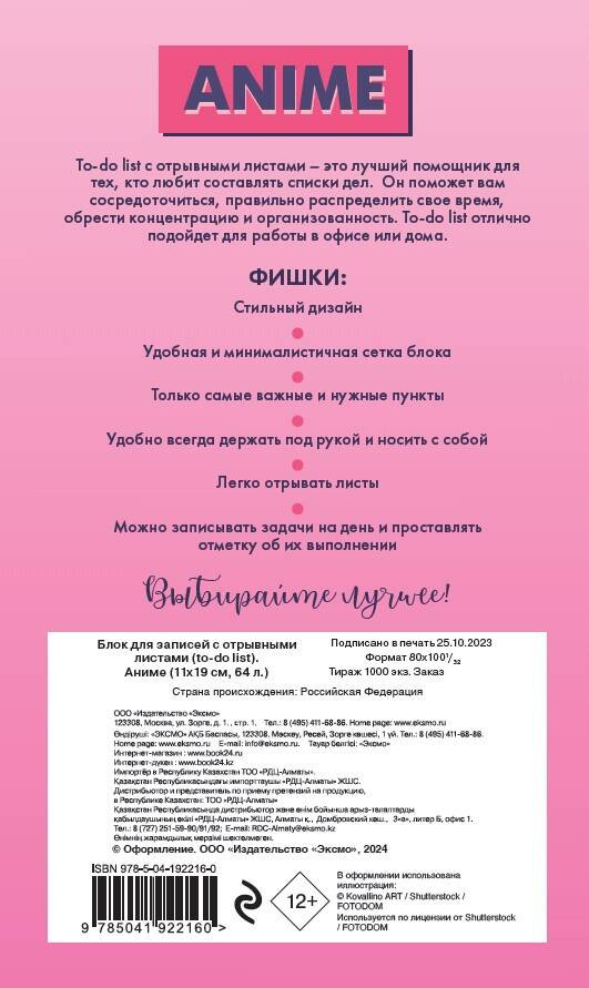 💳 Оплатить за товар можно при получении 🇰🇿 Есть бесплатная доставка по Казахстану от 1 дня 🎁 Копите бонусы с каждой покупки Серия: Делай! Планеры для записи идей, списков и встреч Нехватка времени и вечный цейтнот являются испытаниями, справиться с которыми под силу далеко не каждому. To-do list с отрывными листами — это лучший помощник для тех, кто любит составлять списки дел. Он поможет вам сосредоточится, правильно распределить свое время, обрести концентрацию и организованность. To-do list отлично подойдет для работы в офисе или дома. Мы разработали для вас линейку стильных to-do листов, которые помогут справиться с любой задачей, распланировать все дела и повысить личную эффективность. |