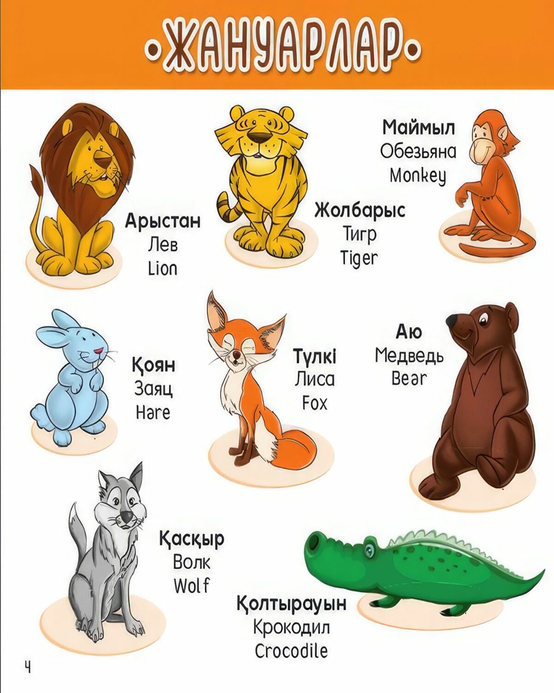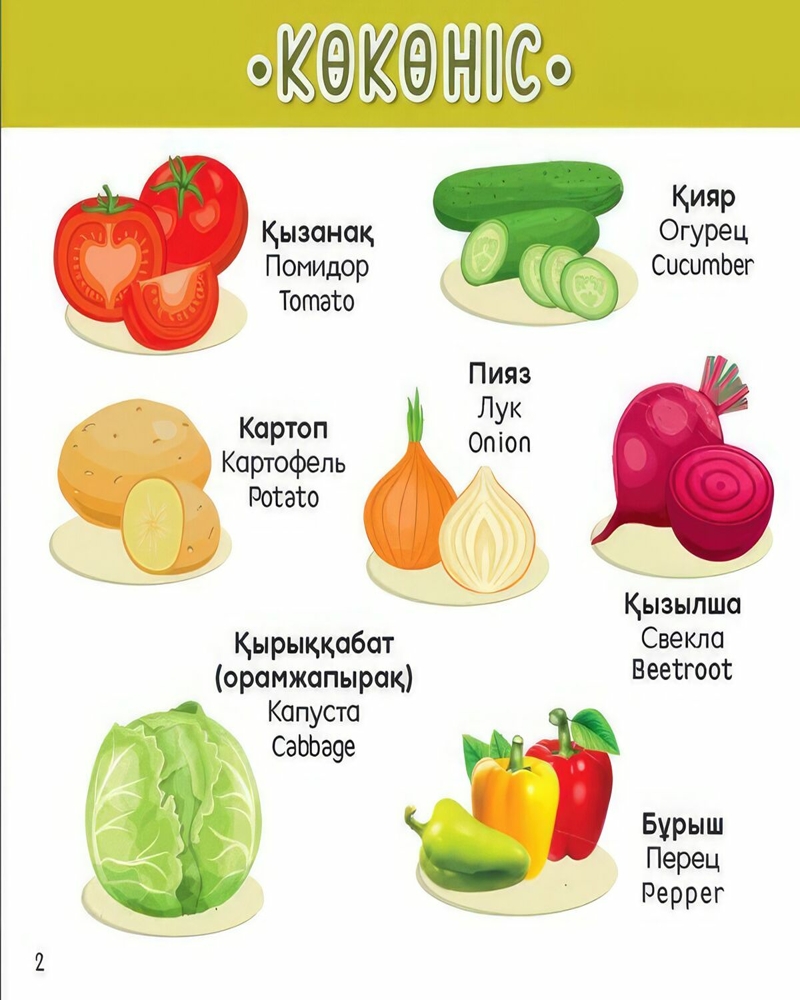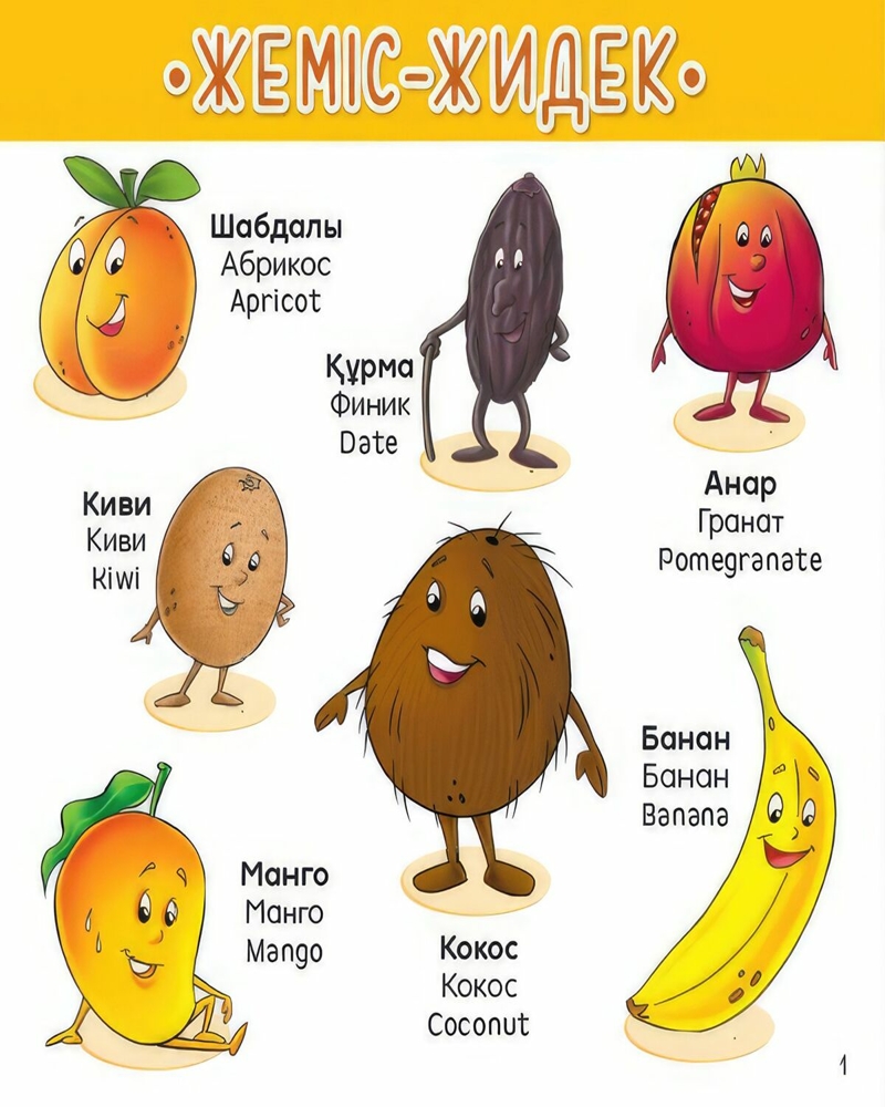 Үш тілде (қазақша, орысша, ағылшынша) берілген алғашқы сөздер баланы дамытуға бағытталған. Кітап ата-аналарға сәбиін қоршаған әлеммен таныстыруға көмектеседі. Мұндай кітаптар баланың сөйлеу қабілетін, логикасын және байқағыштығын дамытуға мүмкіндік береді.