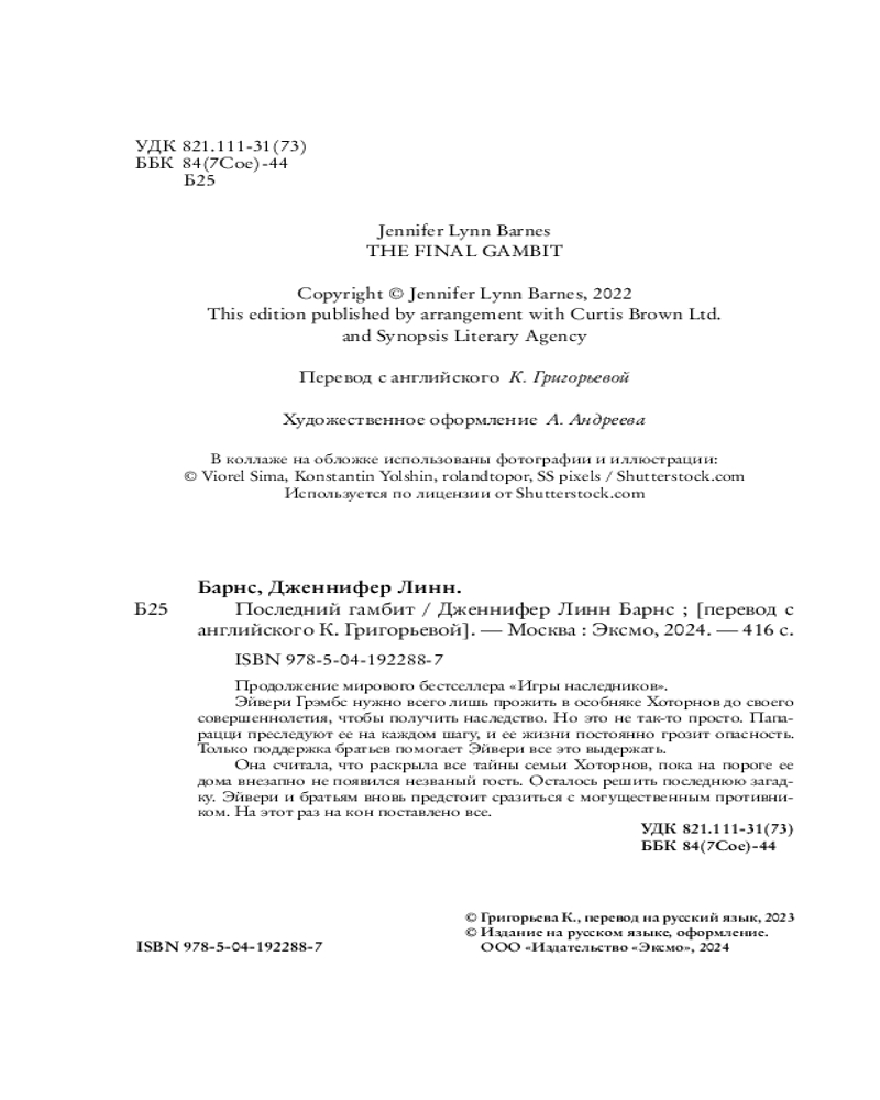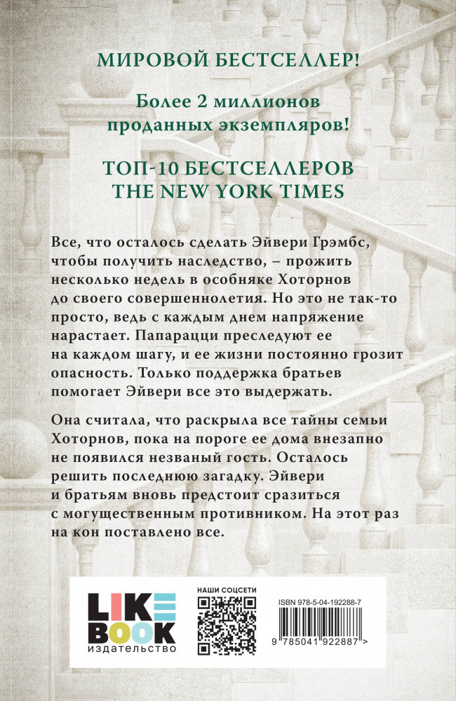 💳 Оплатить за товар можно при получении 🇰🇿 Есть бесплатная доставка по Казахстану от 1 дня 🎁 Копите бонусы с каждой покупки Серия: Young Adult. Бестселлеры Like Book «Последний гамбит» — заключительная часть трилогии. Чем закончится история Эйвери Грэмбс? Сможет ли она наконец получить свое огромное состояние в 46 миллиардов долларов? Необычный детектив-квест, наполненный неожиданными сюжетными поворотами и головоломками. Интриги, романтика, увлекательный сюжет, любовный треугольник и напряженная игра. Для поклонников фильма «Достать ножи», сериала «Дом ключей», а также творчества Карен М. Макманус и Морин Джонсон. |