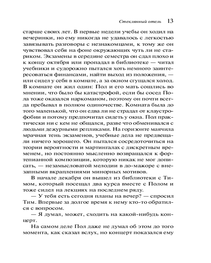 💳 Оплатить за товар можно при получении 🇰🇿 Есть бесплатная доставка по Казахстану от 1 дня 🎁 Копите бонусы с каждой покупки Серия: Магистраль. Главный тренд Новинка от Эмили Сент-Джон Мандел вошла в список самых ожидаемых книг 2020 года и возглавила рейтинги мировых бестселлеров. «Стеклянный отель» — необыкновенный роман о современном мире, живущем на сумасшедших техногенных скоростях, оплетенном замысловатой паутиной финансовых потоков, биржевых котировок и теневых схем. Мандел рисует его иллюзорным, как элегантная громада элитного отеля в канадской глуши, и жестоким, как надпись, сделанная на панорамном окне его сверкающего лобби: «Почему бы тебе не поесть битого стекла?» Предназначена ли она Винсент — загадочной молодой девушке, в прошлом которой тоже есть стекло с надписью, а скоро появятся и тайны посерьезнее? Или, может, дело в Поле, брате Винсент, которого тянет вниз невысказанная вина и зависимость от наркотиков? Или же адресат — Джонатан Алкайтис, таинственный владелец отеля и руководитель на редкость прибыльного инвестиционного фонда, у которого в руках так много денег и власти? |