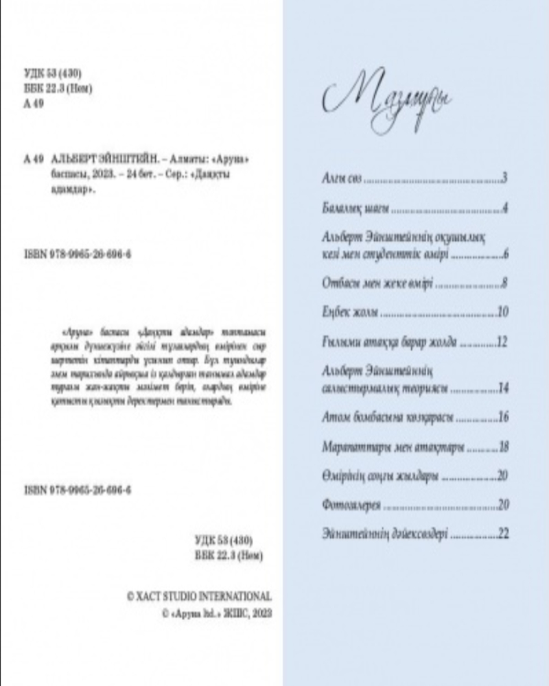 💳 Оплатить за товар можно при получении 🇰🇿 Есть бесплатная доставка по Казахстану от 1 дня 🎁 Копите бонусы с каждой покупки Серия: Даңқты адамдар (Великие личности) «Даңқты адамдар» топтамасының кітаптары оқырмандарды дарынды, танымал тұлғалардың өмірі мен шығармашылығы туралы мағлұмат береді. Осы басылымдар арқылы оқырмандар дүниежүзілік тарихта жарқын із қалдырған тұлғалардың өмірбаянын біліп қана қоймай, сонымен қатар олардың өмір жолындағы қызықты деректермен де таныса алады. |