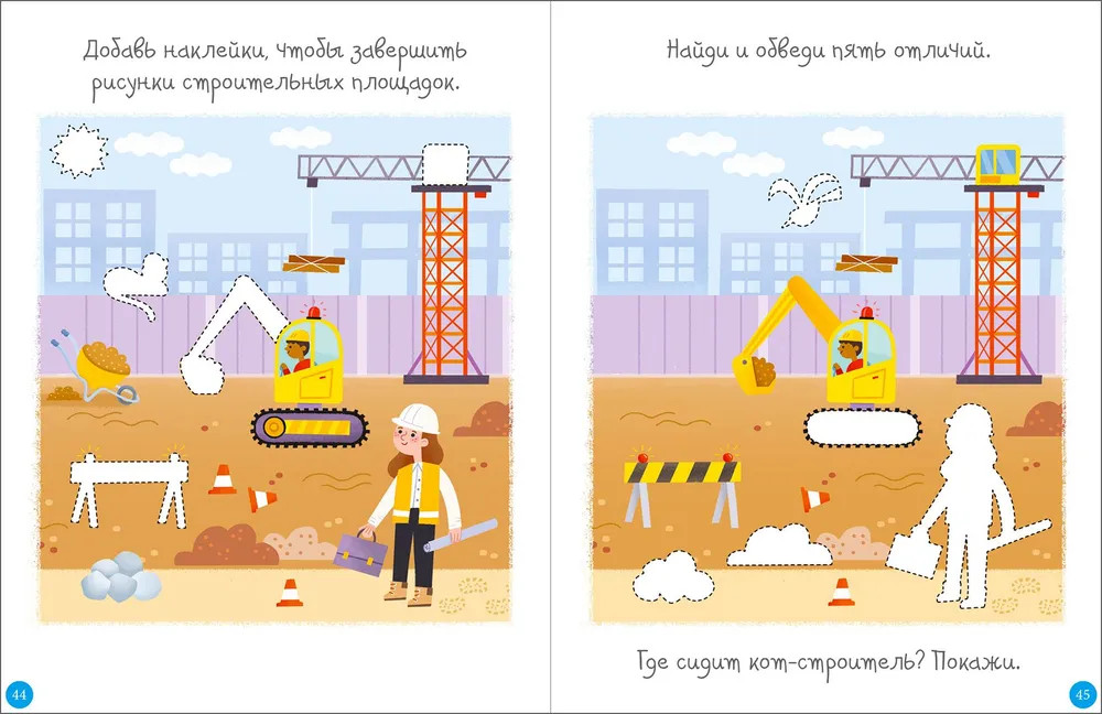 💳 Оплатить за товар можно при получении 🇰🇿 Есть бесплатная доставка по Казахстану от 1 дня 🎁 Копите бонусы с каждой покупки В книге собраны увлекательные задания разной сложности с наклейками: пройди лабиринт, собери пазл, найди отличия, подбери картинку по её контуру, дорисуй и раскрась, а также много-много других. Более 240 наклеек, красочные иллюстрации и интересные задания надолго захватят внимание вашего малыша. Он будет заниматься с удовольствием и узнает, как называется разная строительная техника, какие используют строительные инструменты и т. п. |