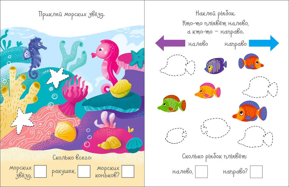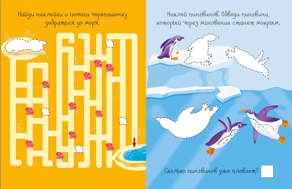 Активити с наклейками. В океанеВ данный момент этот товар отсутствует в продаже. Возможно, у нас найдется аналогичный или похожий товар здесь. В книге собраны увлекательные задания разной сложности с наклейками: пройди лабиринт, собери пазл, найди отличия, подбери картинку по её контуру, дорисуй и раскрась, а также много-много других. Более 220 наклеек, красочные иллюстрации и интересные задания надолго захватят внимание вашего малыша. Он будет заниматься с удовольствием и узнает, об интересном подводном мире и его обитателях. |