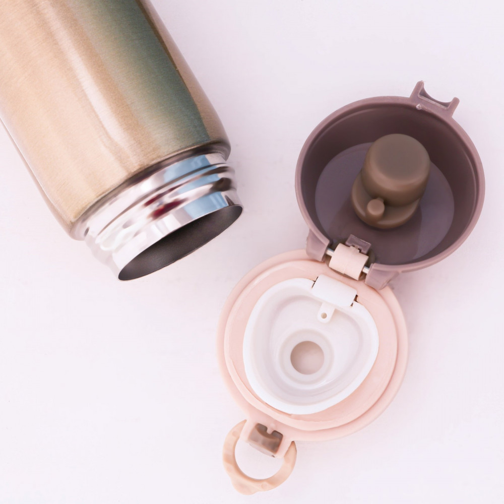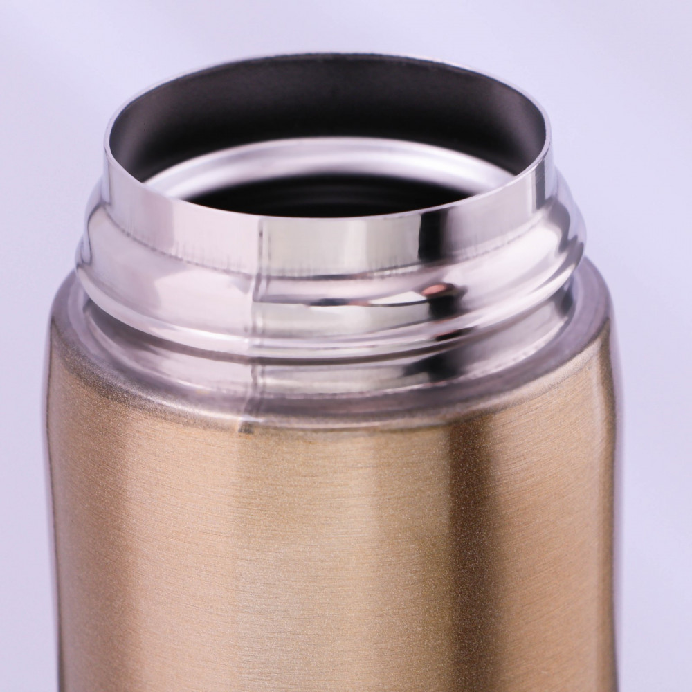 Симпатичная бутылка для воды с двойными стенками из металла. Удобная не протекающая черная крышка. Тепло не держит. Больше подходит если едете куда то и взяли кофе или чай с собой, выпить по дороге максимум за 2 часа. Ну или просто как бутылка для воды. Если нужен настоящий термос, который долго держит тепло, то посмотрите настоящие термосы.