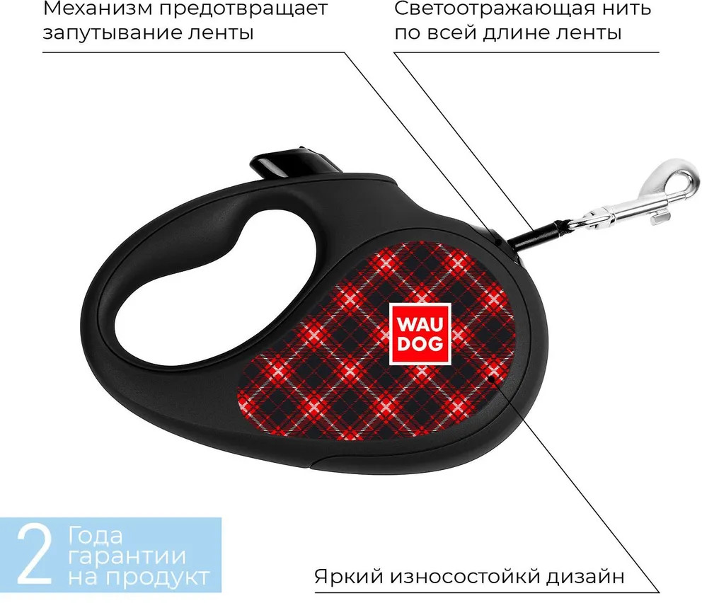 Waudog Поводок-рулетка для собак «Шотландка»